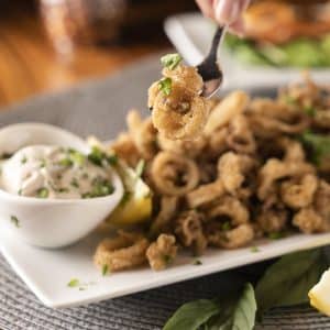 Deep fried baby squid with a touch of reduced balsamic vinegar.